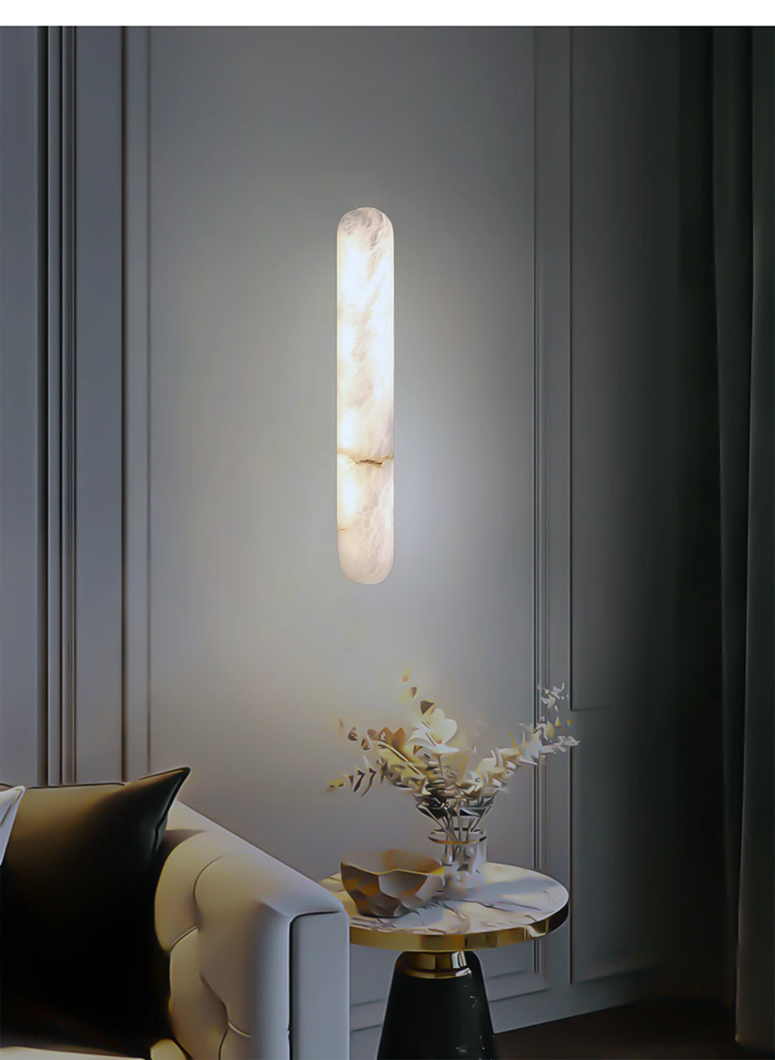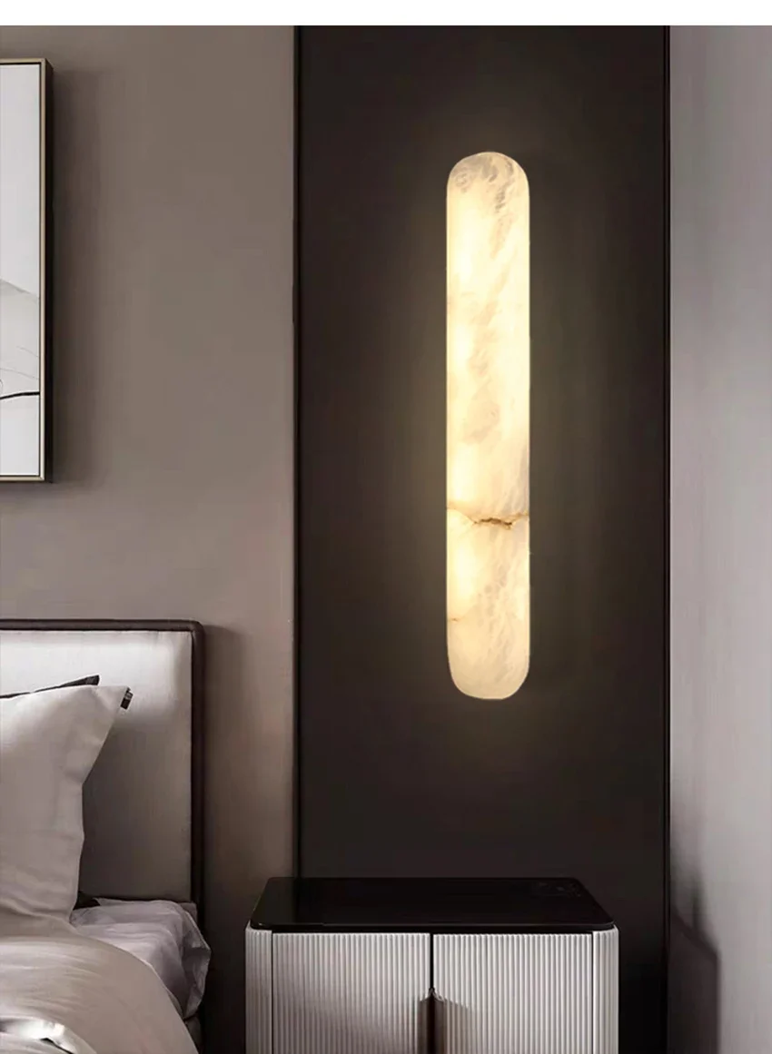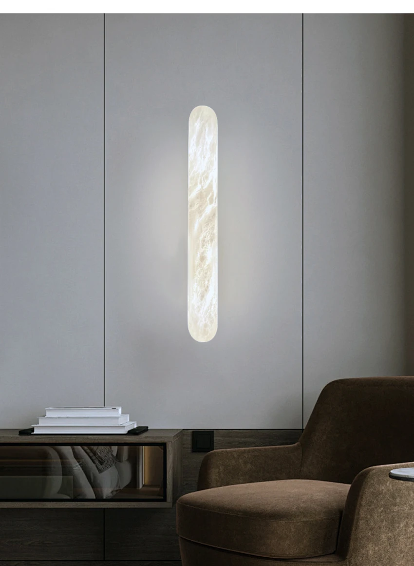 2026 Modern Luxury Natural Marble Wall Lamp LED Long Oval Stone Sconces For Living Room Bedside Staircase Aisle Lighting Fixture